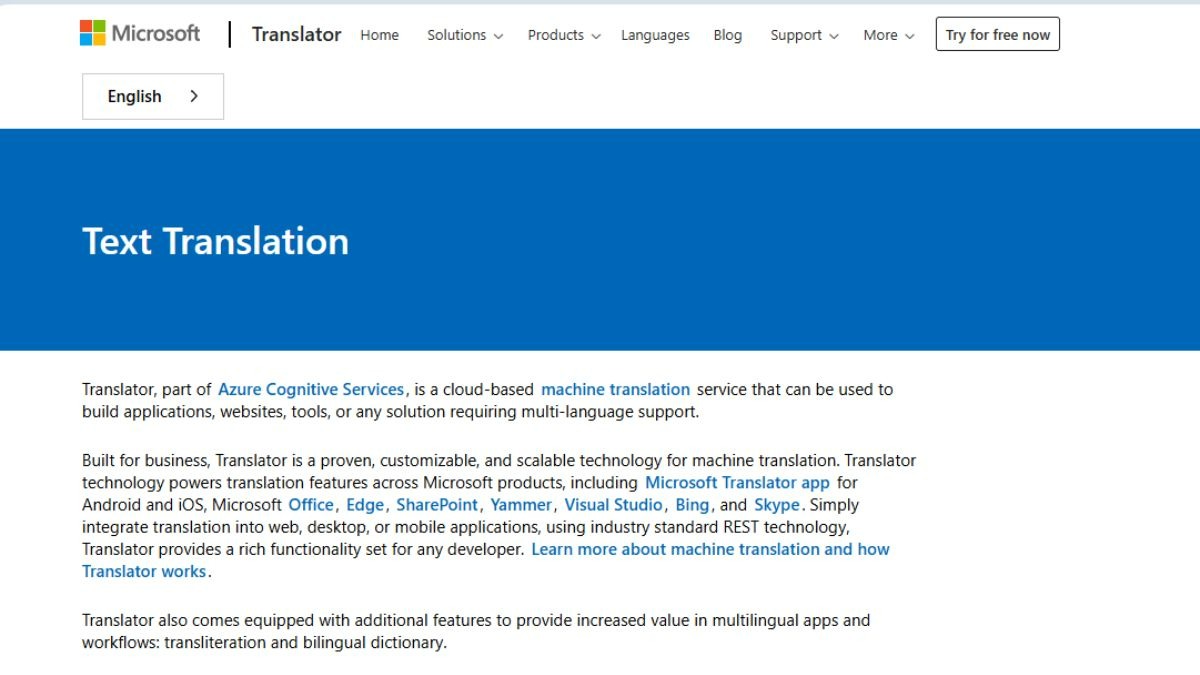 Microsoft Translator API has an intuitive interface and simple integration that allows you to easily convert text from one language to another. It also supports translations into multiple languages simultaneously. Built on NMT, it delivers context-sensitive accuracy, though LLM-powered customization is still limited to some languages.