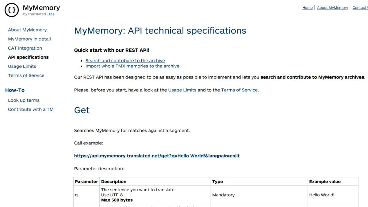 MyMemory API is one of the top translation APIs of 2025. This software stands out for providing accurate and culturally relevant results, based on a combination of machine translation with user-uploaded translation memories. It is typically used within professional CAT environments.